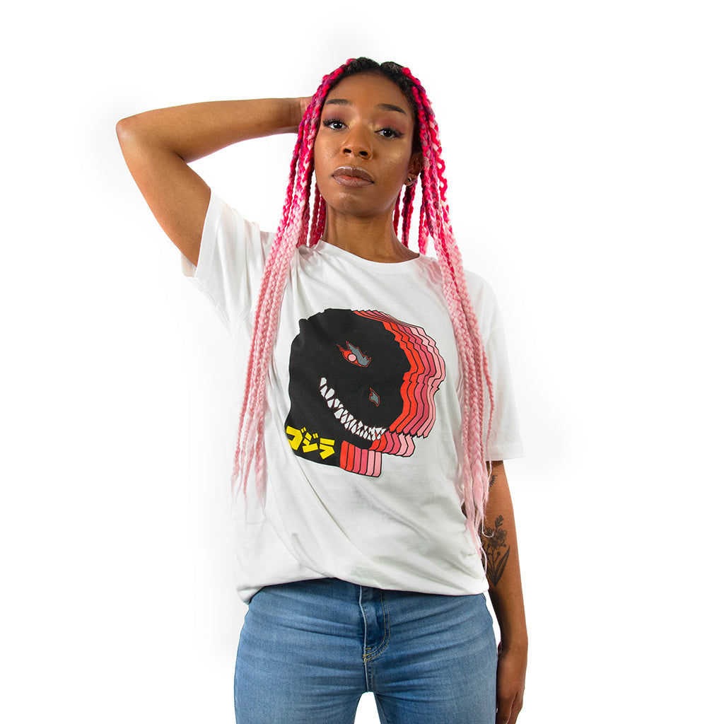 Printed by Impact Merchandising on a Next Level 3600 white 100% cotton tee with printed interior label.