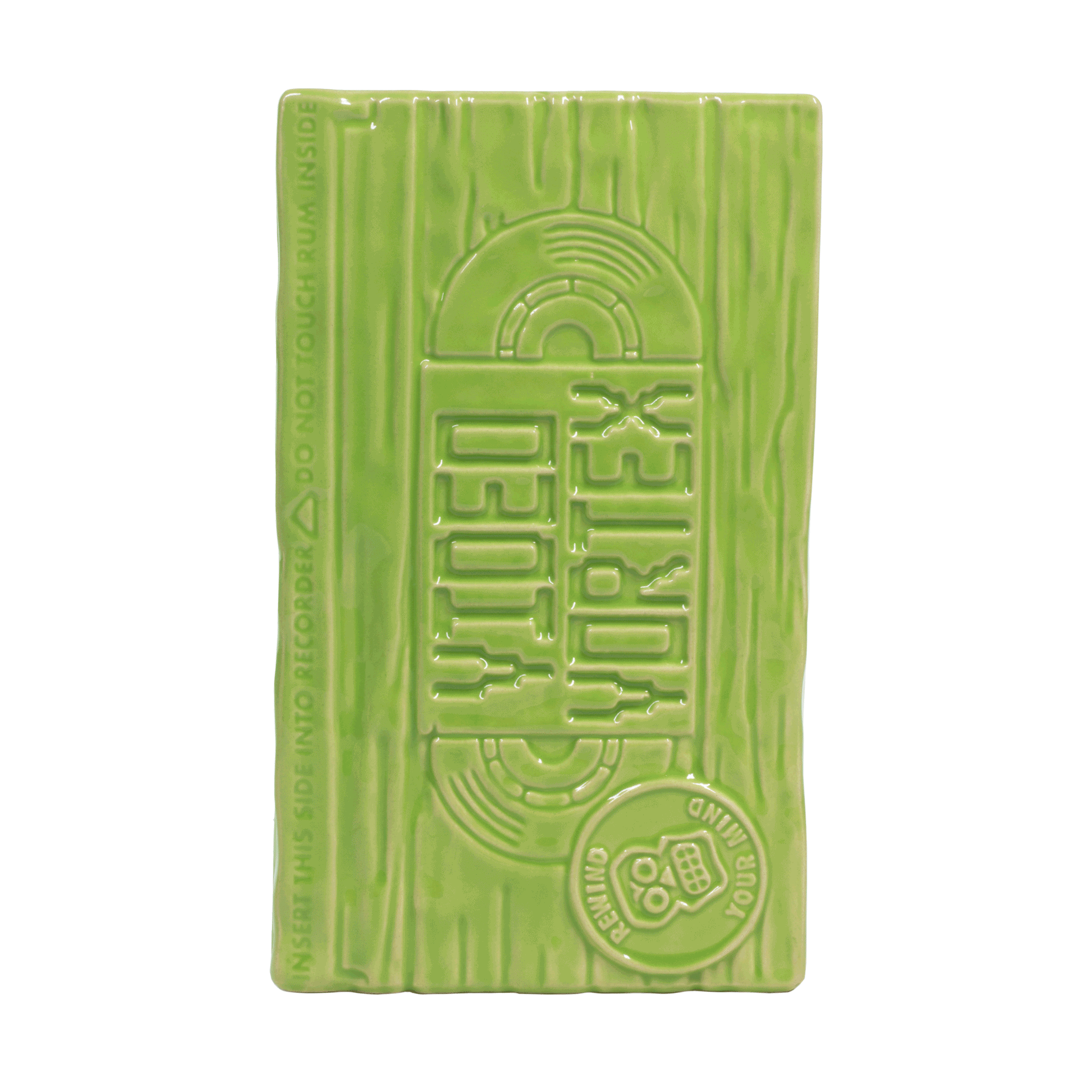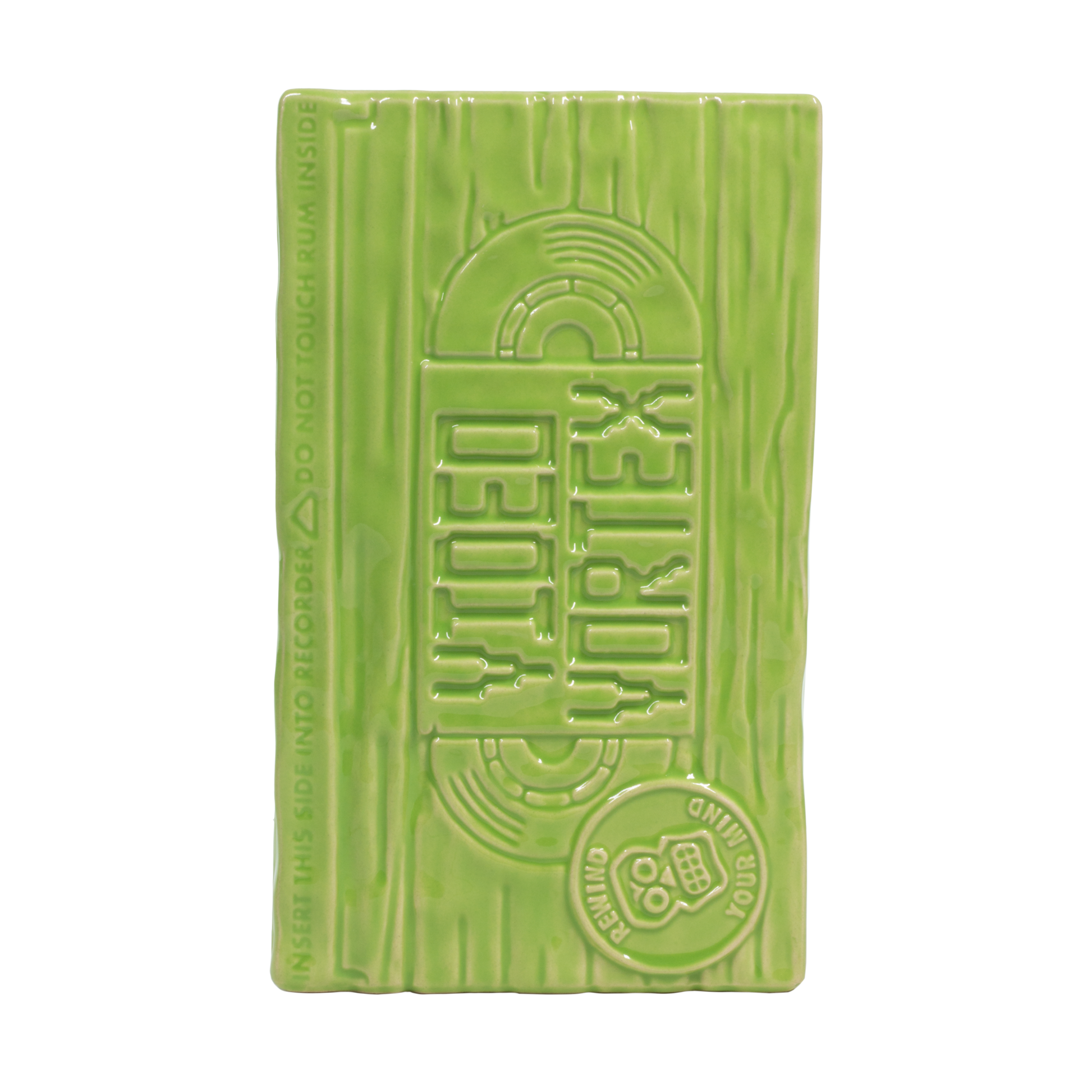 Standing a towering 8.5" tall, weighing in at 2 lb 8 oz, and holding no less than 40 oz of liquor and/or toxic waste, this monument to VHS's victory over tomorrow's turbulent tribes of mutant maniacs is created by artists Avedon Arcade and Darrel Raymundo. It's also the biggest, boldest, and most blazing tiki mug to ever cast its shadow on our fallen world. Rewind your mind...and BUY OR DIE.